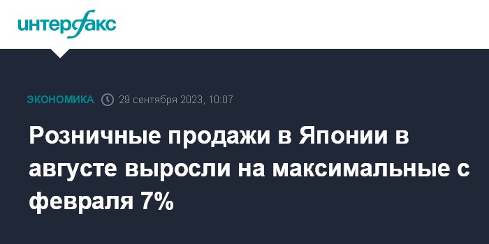 Розничные продажи в Японии в августе выросли на максимальные с февраля 7%