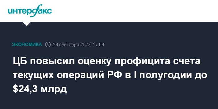 В начале июля ЦБ оценивал профицит счета текущих операций в полугодии текущего года в $20,2 млрд, в начале сентября повысил оценку до $23,1 млрд.