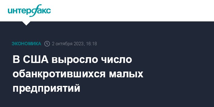Москва. 2 октября. INTERFAX.RU - Число малых предприятий (МП) США, подавших заявление о банкротстве, увеличивается рекордными со времен пандемии темпами и по состоянию на конец сентября достигло около 1,5 тысяч, сообщает The Wall Street Journal.