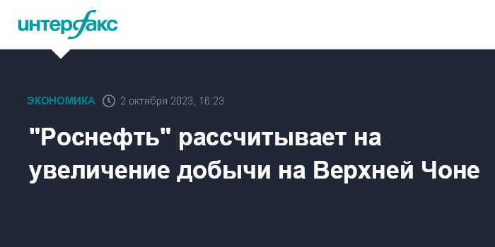 "Роснефть" рассчитывает на увеличение добычи на Верхней Чоне