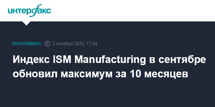 Индекс ISM Manufacturing в сентябре обновил максимум за 10 месяцев