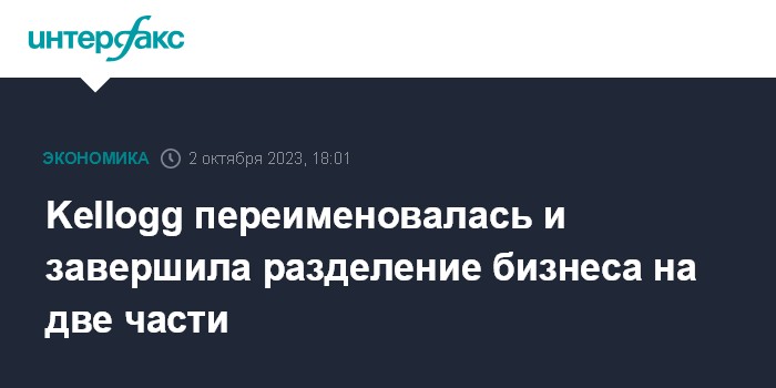 Kellogg переименовалась и завершила разделение бизнеса на две части