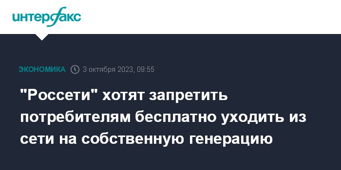 "Россети" хотят запретить потребителям бесплатно уходить из сети на собственную генерацию