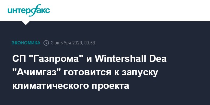 Москва. 3 октября. INTERFAX.RU - Совместное предприятие "Газпрома" и германской Wintershall Dea АО "Ачимгаз", которое разрабатывает блок 1A ачимовских залежей Уренгойского НГКМ, начало реализацию пилотного климатического проекта, сообщает компания в публикации в отраслевом журнале "Газовая промышленность".