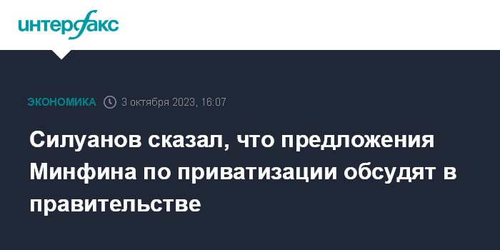 Силуанов сказал, что предложения Минфина по приватизации обсудят в правительстве