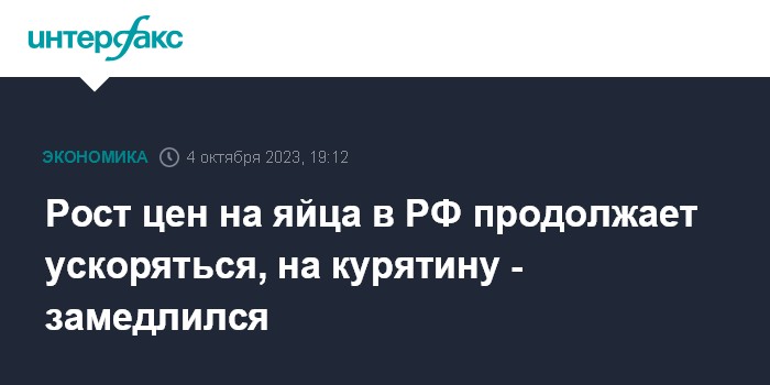 Рост цен на яйца в РФ продолжает ускоряться, на курятину - замедлился