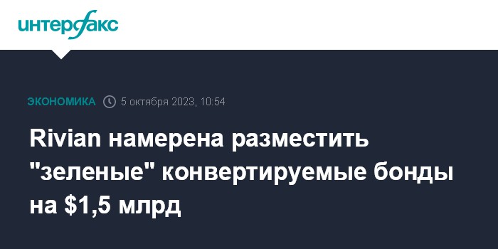 Москва. 5 октября. INTERFAX.RU - Американский производитель электромобилей Rivian Automotive Inc. сообщил, что планирует разместить "зеленые" конвертируемые облигации с погашением в 2030 году на сумму $1,5 млрд.