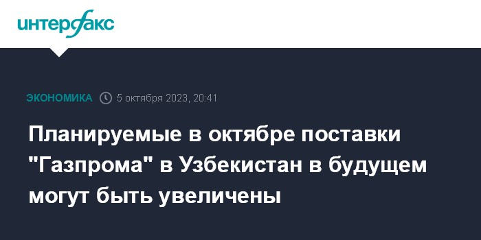 Планируемые в октябре поставки "Газпрома" в Узбекистан в будущем могут быть увеличены