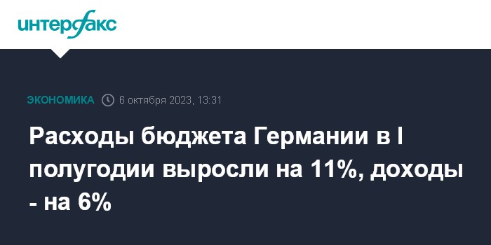 Расходы бюджета Германии в I полугодии выросли на 11%, доходы - на 6%
