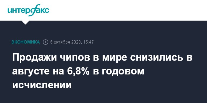 Продажи чипов в мире снизились в августе на 6,8% в годовом исчислении