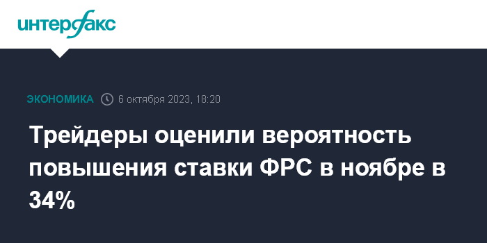 Трейдеры оценили вероятность повышения ставки ФРС в ноябре в 34%