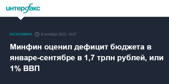 Минфин оценил дефицит бюджета в январе-сентябре в 1,7 трлн рублей, или 1% ВВП