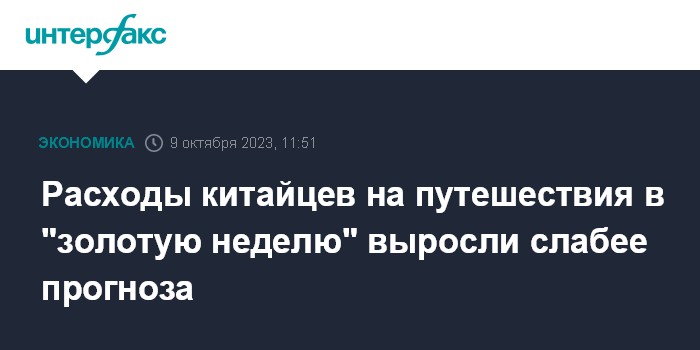 Москва. 9 октября. INTERFAX.RU - Расходы китайцев на внутренний туризм в дни праздничной "золотой недели" в 2023 году увеличились в два раза, но оказались ниже прогноза, следует из данных Министерства культуры и туризма КНР.