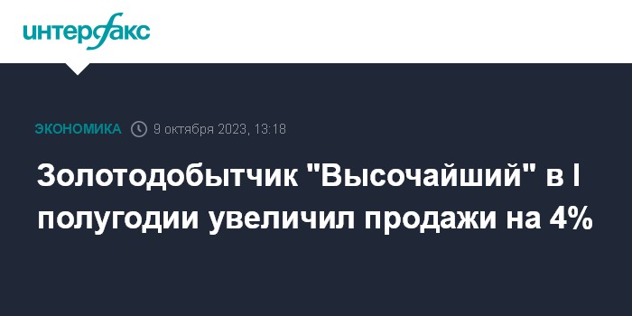 Золотодобытчик "Высочайший" в I полугодии увеличил продажи на 4%
