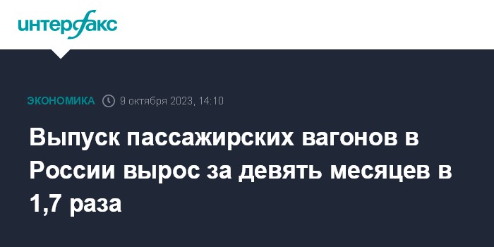 Выпуск пассажирских вагонов в России вырос за девять месяцев в 1,7 раза