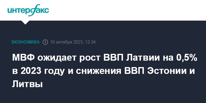 Москва. 10 октября. INTERFAX.RU - Международный валютный фонд снизил прогноз прироста ВВП Латвии в 2023 году до 0,5%, сообщается в октябрьском обзоре мировой экономики (World Economic Outlook) МВФ.