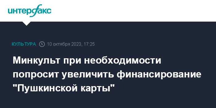 Минкульт при необходимости попросит увеличить финансирование "Пушкинской карты"