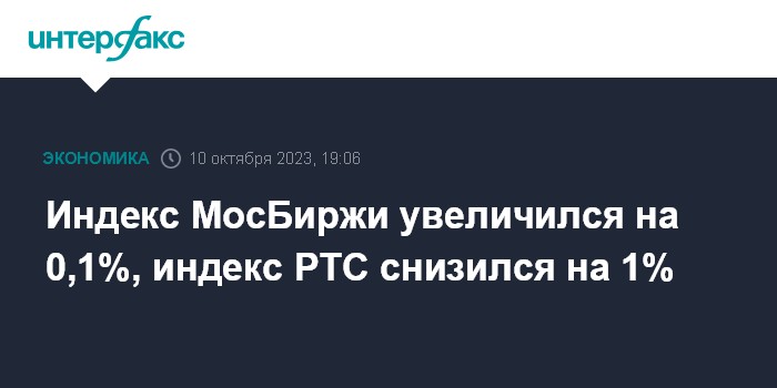 Индекс МосБиржи увеличился на 0,1%, индекс РТС снизился на 1%