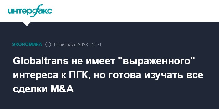 Globaltrans не имеет "выраженного" интереса к ПГК, но готова изучать все сделки M&A