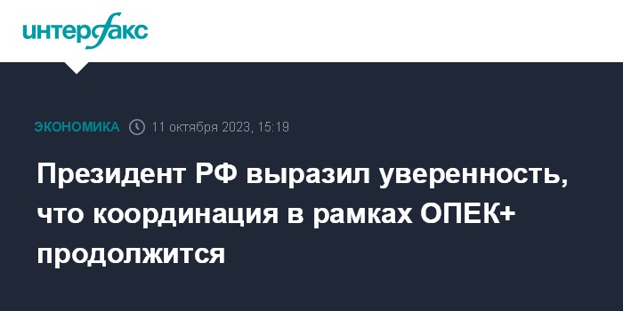 Президент РФ выразил уверенность, что координация в рамках ОПЕК+ продолжится