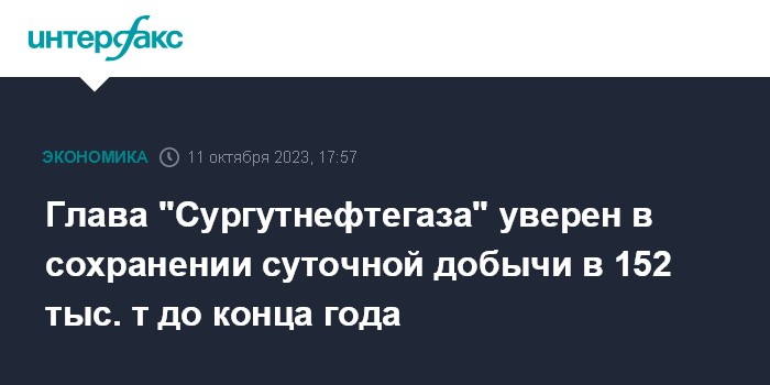 Глава "Сургутнефтегаза" уверен в сохранении суточной добычи в 152 тыс. т до конца года