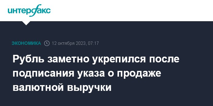 Как отмечают эксперты "Интерфакс-ЦЭА", основной причиной заметного укрепления курса рубля в начале торгов 12 октября стал указ президента РФ о введении сроком на шесть месяцев обязательной продажи валютной выручки для ряда крупнейших экспортеров. При этом данный фактор в краткосрочной перспективе, скорее всего, будет доминировать над другими традиционными для внутреннего валютного рынка факторами, такими как динамика мировых цен на нефть и мировых рынков капитала, которые на какое-то время отойдут на второй план. Указ об обязательной продаже валютной выручки позитивен не только для курса рубля, но и для внутреннего долгового рынка и экономики в целом, поскольку снижает потребность в дальнейшем ужесточении денежно-кредитной политики ЦБ РФ, полагают эксперты.