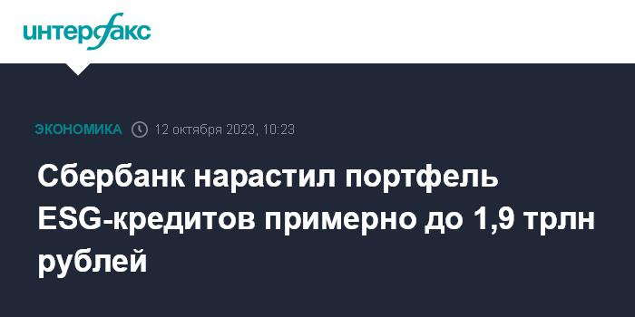 "По состоянию на сентябрь 2023 года портфель ESG-кредитов Сбера составил порядка 1,9 трлн рублей, - сказал он. - Он и дальше будет расти, это общий тренд для всех банков".