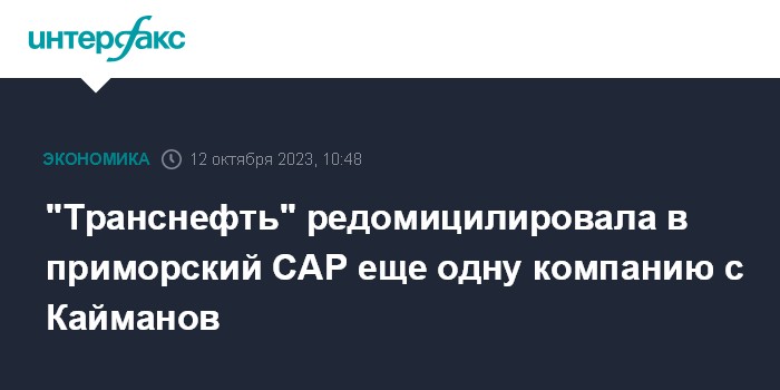 "Транснефть" редомицилировала в приморский САР еще одну компанию с Кайманов