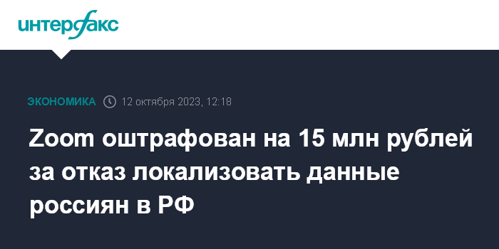 Впервые Zoom был оштрафован за нарушение требования о локализации данных россиян в июле 2022 года. Сумма штрафа составила 1 млн руб.