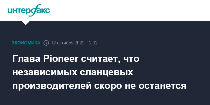 Глава Pioneer считает, что независимых сланцевых производителей скоро не останется