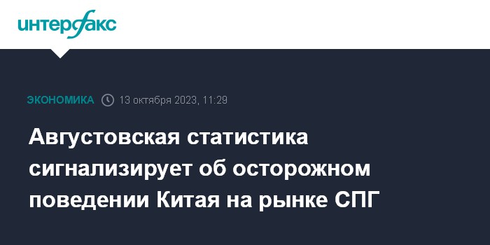 Москва. 13 октября. INTERFAX.RU - Китай в августе 2023 года, предположительно, резко изменил поведение на рынке сжиженного природного газа (СПГ).