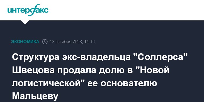 Структура экс-владельца "Соллерса" Швецова продала долю в "Новой логистической" ее основателю Мальцеву