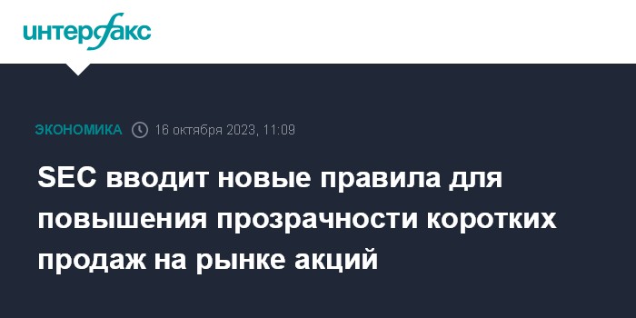 Москва. 16 октября. INTERFAX.RU - Комиссия по ценным бумагам и биржам (SEC) США объявила о новых правилах, направленных на повышение прозрачности "коротких продаж" на рынке акций. Об этом сообщает CNBC.