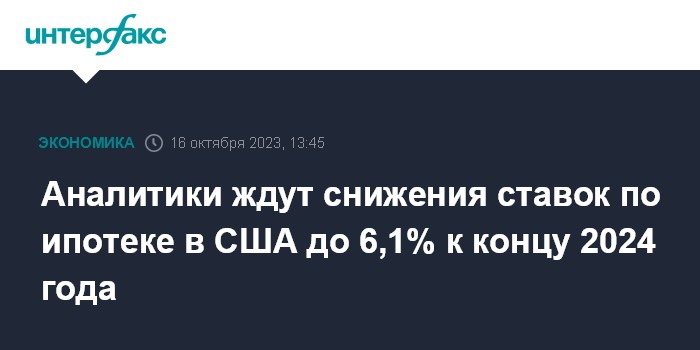 Аналитики ждут снижения ставок по ипотеке в США до 6,1% к концу 2024 года