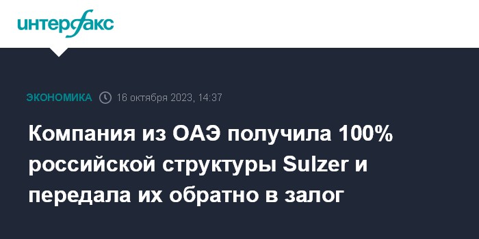 Компания из ОАЭ получила 100% российской структуры Sulzer и передала их обратно в залог