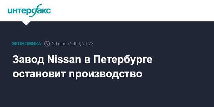 Санкт-Петербург. 29 июля. INTERFAX.RU - Завод Nissan в Петербурге в начале августа будет остановлен на период коллективного отпуска работников, сообщили "Интерфаксу" на предприятии.