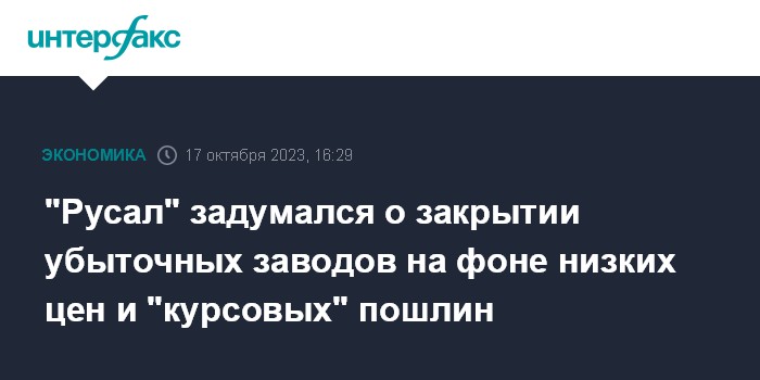 "Русал" часто поднимал вопрос о консервации части мощностей, в основном, бывших заводов "СУАЛа", вошедших в 2007 году в объединенную компанию. В 2021 году компания ссылалась на потери "сотен миллионов долларов" в связи с введением экспортной пошлины на металлы (действовала с августа по декабрь 2021 года). Пошлина объяснялась сверхдоходами металлургов на фоне высоких цен на их продукцию. Сейчас цены на алюминий на 12% ниже среднего уровня 2021 года, помимо этого, "Русал" в текущем году не получает дивиденды от "Норникеля".
