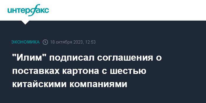 "Илим" подписал соглашения о поставках картона с шестью китайскими компаниями
