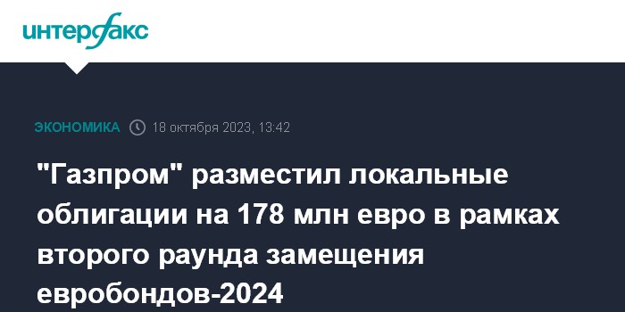 "Газпром" разместил локальные облигации на 178 млн евро в рамках второго раунда замещения евробондов-2024