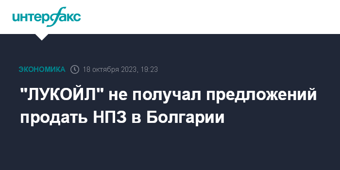 "ЛУКОЙЛ" не получал предложений продать НПЗ в Болгарии