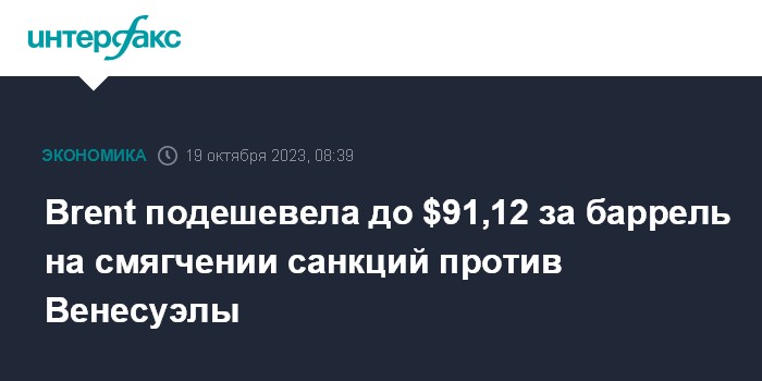 Brent подешевела до $91,12 за баррель на смягчении санкций против Венесуэлы