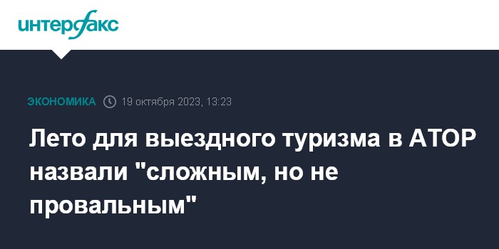 Москва. 19 октября. INTERFAX.RU - Ограниченный пул стран для поездок, валютные колебания и геополитическая напряженность негативно отразились на летнем сезоне 2023 года в выездном туризме: он не стал провальным, но и не оправдал ожиданий туроператоров, сообщила исполнительный директор Ассоциации туроператоров России Майя Ломидзе.