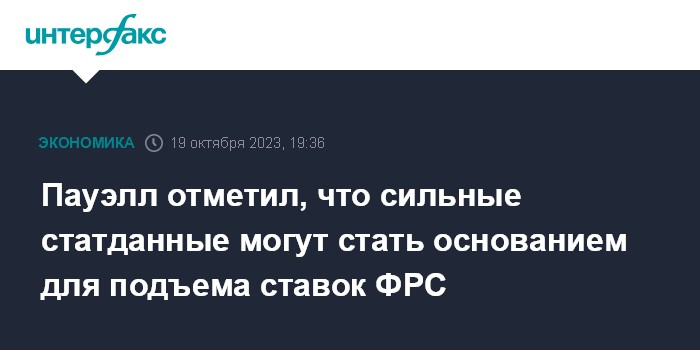 Пауэлл отметил, что сильные статданные могут стать основанием для подъема ставок ФРС