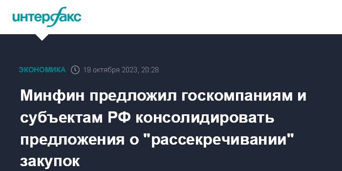 Минфин предложил госкомпаниям и субъектам РФ консолидировать предложения о "рассекречивании" закупок