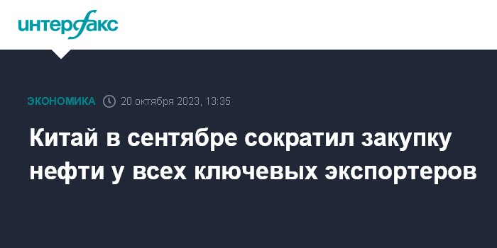 Китай в сентябре сократил закупку нефти у всех ключевых экспортеров