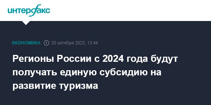 Регионы России с 2024 года будут получать единую субсидию на развитие туризма
