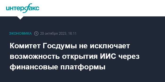 Комитет Госдумы не исключает возможность открытия ИИС через финансовые платформы