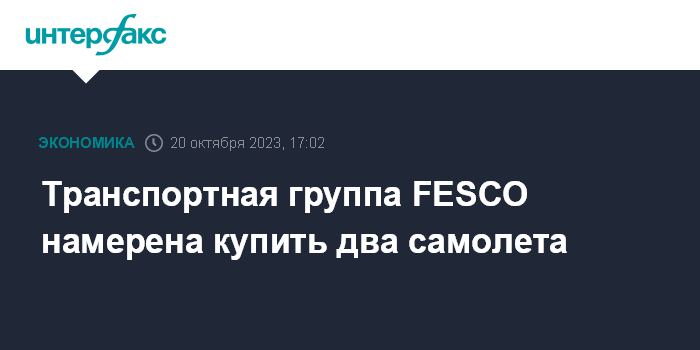 Москва. 20 октября. INTERFAX.RU - Транспортная группа FESCO (головная компания - ПАО "Дальневосточное морское пароходство", ДВМП) сохраняет интерес в приобретении собственного авиапарка, рассматривает покупку двух самолетов, сообщил журналистам председатель совета директоров FESCO Андрей Северилов в кулуарах форума "Сделано в России".
