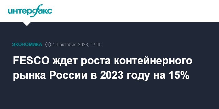 Москва. 20 октября. INTERFAX.RU - Российский контейнерный рынок по итогам 2023 года может вырасти на 15% к 2022 году, сообщил журналистам председатель совета директоров FESCO (головная компания - ПАО "Дальневосточное морское пароходство", ДВМП) Андрей Северилов.