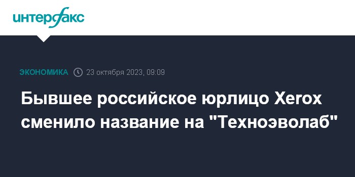 Москва. 23 октября. INTERFAX.RU - ООО "Ксерокс (СНГ)", бывшее юрлицо Xerox в России, сменило название на ООО "Техноэволаб".